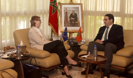 عقد وزير النقل واللوجستيك، عبد الصمد قيوح، اليوم الخميس بالرباط، اجتماع عمل مع سفيرة الاتحاد الأوروبي بالمغرب، باتريسا لومبارت كوساك،
